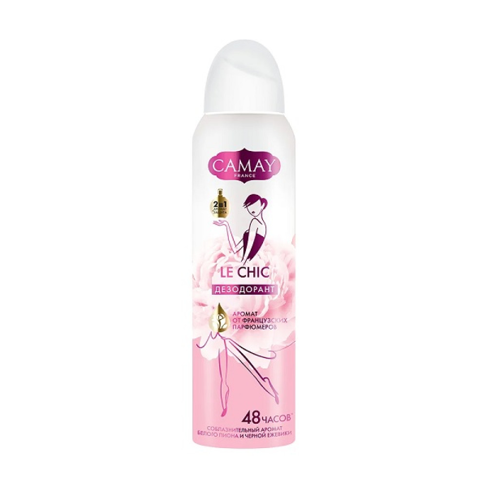 Дезодорант Camay Le Chic — это соблазнительный аромат, созданный профессиональными парфюмерами, и защита от запаха пота на 48 часов!