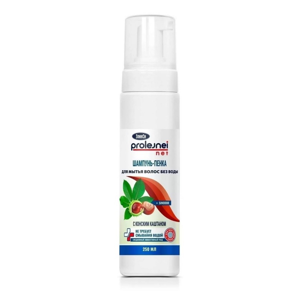 Шампунь-пенка ЭликСи Prolejnei net с конским каштаном для мытья волос без воды 250 мл
